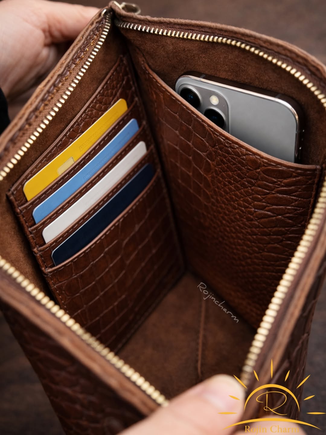 داخل کیف بهصورت هوشمندانه طراحی شده؛ جیب کناری مخصوص موبایل که بهراحتی آیفون داخلش قرار میگیره فضای کارت با ظرفیت ۶ عدد کارت جیب بزرگ مرکزی برای پول نقد یا وسایل ضروری آستر داخلی نرم و باکیفیت برای محافظت از وسایل